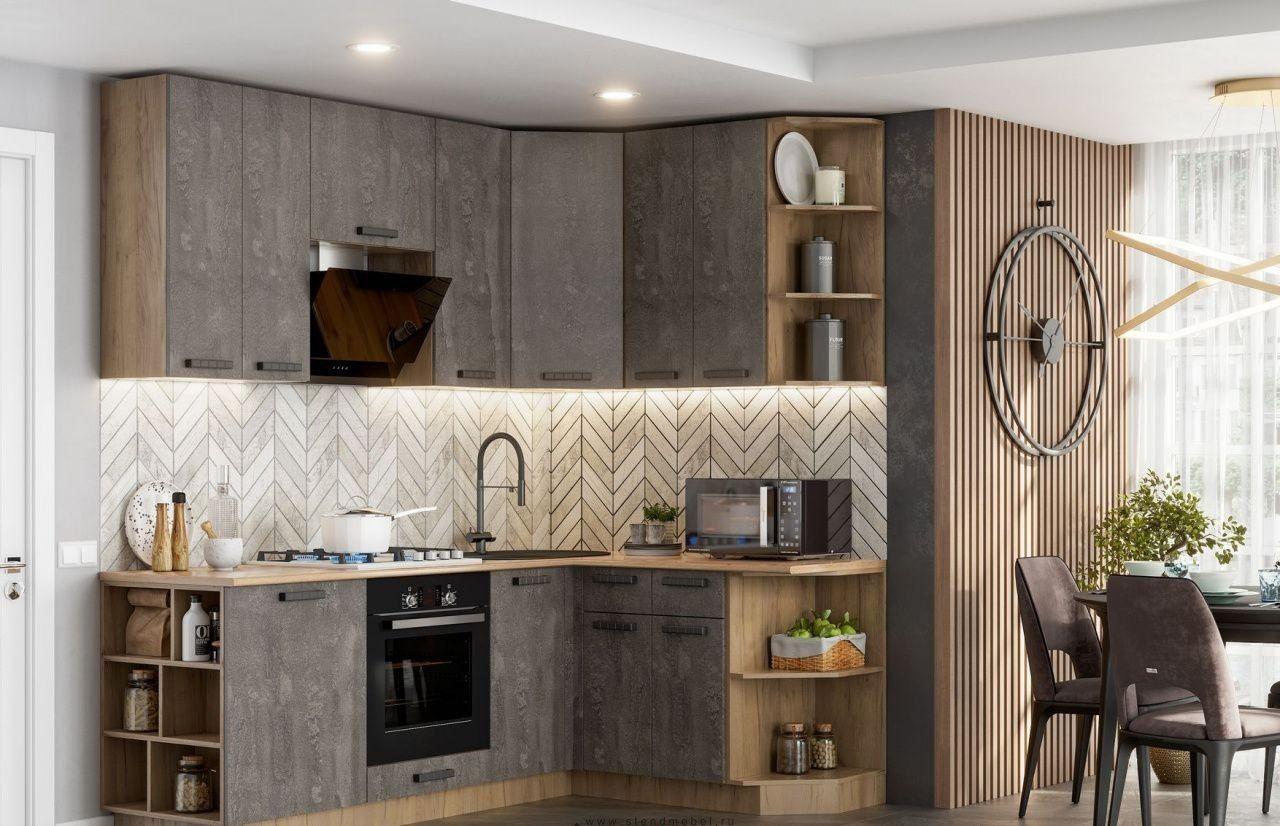 Угловая кухня из МДФ с пластиком. От 45 000 ₽. Практичное и стильное решение для просторных кухонь: пластик повышает износостойкость, а угловая планировка увеличивает функциональность пространства.