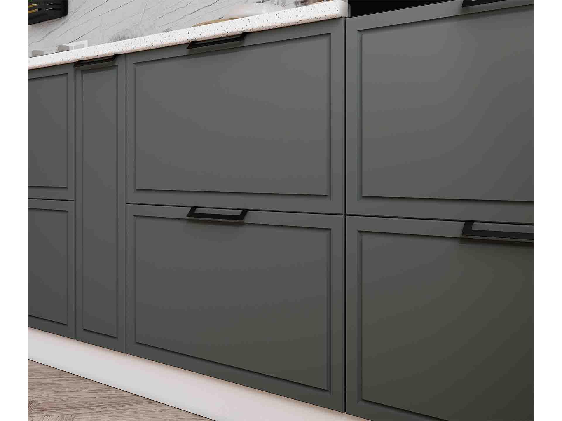 абсолютно матовые фасады (лак, эмаль, плёнка), особенно в тёмных и насыщенных тонах;